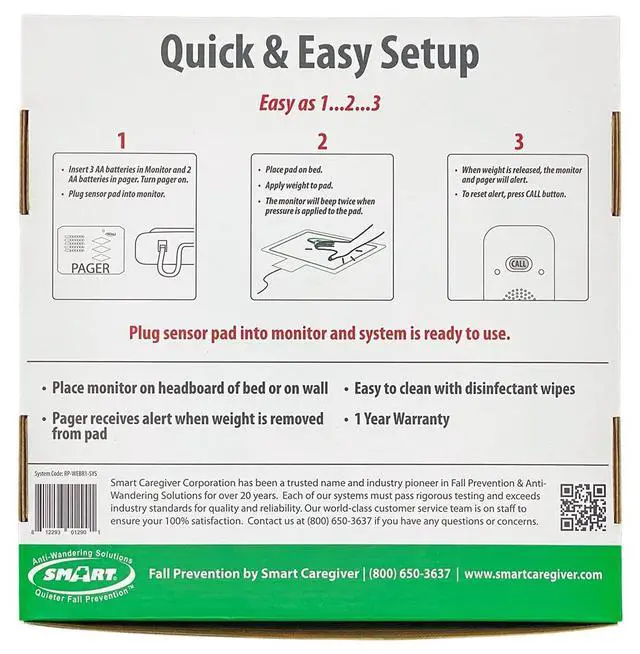 Wireless Economy Quiet Fall Alert with 10in x 30in Bed Pad and Caregiver Pager in Retail Packaging