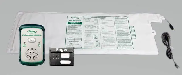 Wireless Economy Quiet Fall Alert with 10in x 30in Bed Pad and Caregiver Pager. Great for notifying a caregiver if the user leaves the bed.