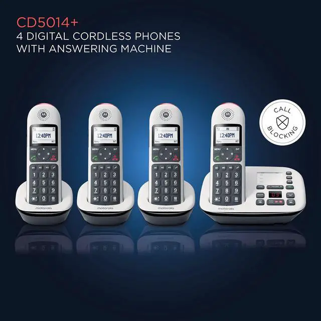 Four-Handset System for Complete Home Coverage]Includes four fully cordless handsets so family members can place phones in multiple rooms. Supports up to four registered handsets per base, allowing flexible, whole-home communication without additional phone jacks. ^^ Advanced Call Blocking Block up to 1000 NumbersStop unwanted calls with powerful nuisance blocking. Store and block up to 1000 numbers, or block by call type to prevent robocalls, anonymous calls, and repeated nuisance callers from reaching your home. ^^ Digital Answering Machine with 30 Minutes Recording TimeNever miss important messages. The built-in answering machine stores up to 30 minutes of incoming messages, outgoing announcements, and memos.