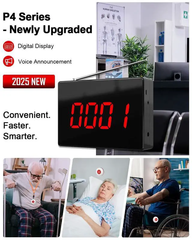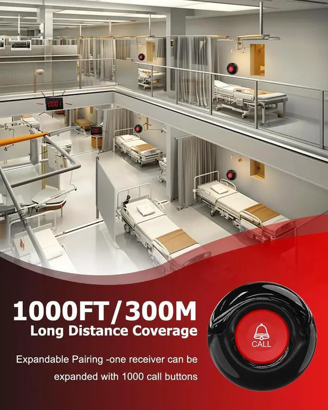 UPGRADE: The upgraded wireless calling system displays and voice announces the call number, making it easier to identify which room requires attention. Additionally, you can set the alert to repeat multiple times instead of the usual single beep, so patients or dont need to press the nurse call button again to get attention. ^^ EXPANDABLE TO 1000
