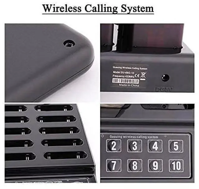 ^^ You will get: This set of wireless paging system contains 10 pagers and 1 keypad call, Built-in external antenna and 10 batteries charging slots. ^^ 3