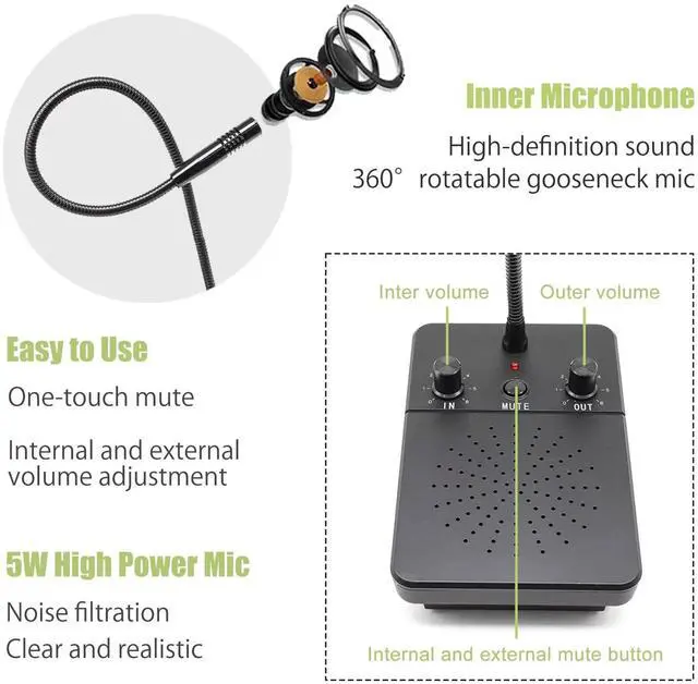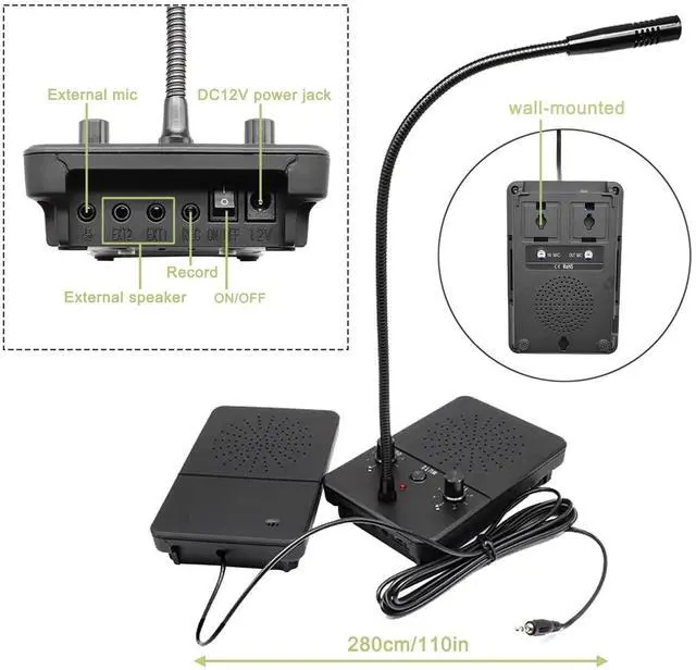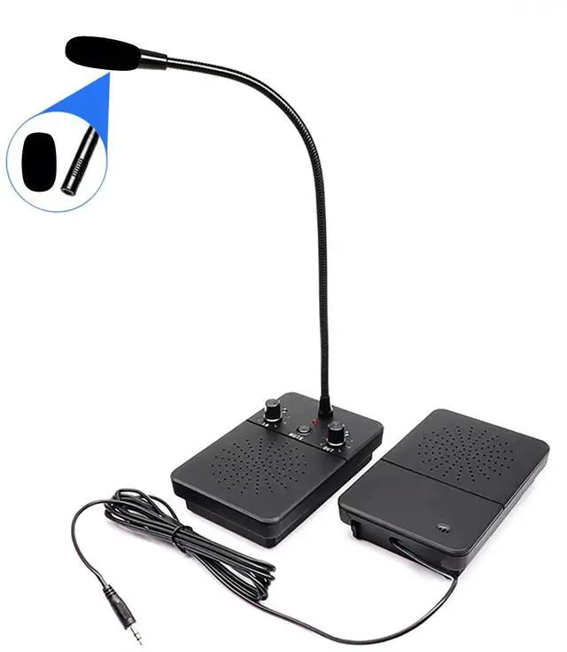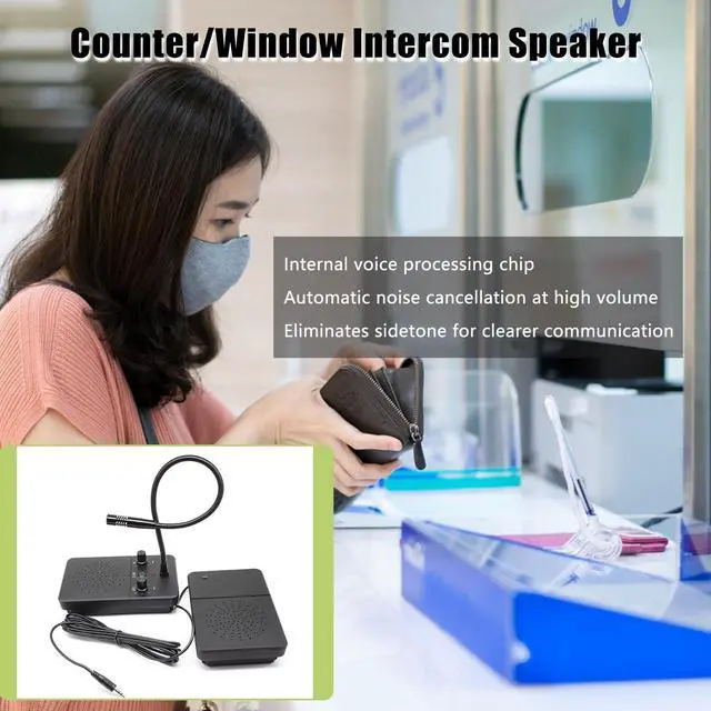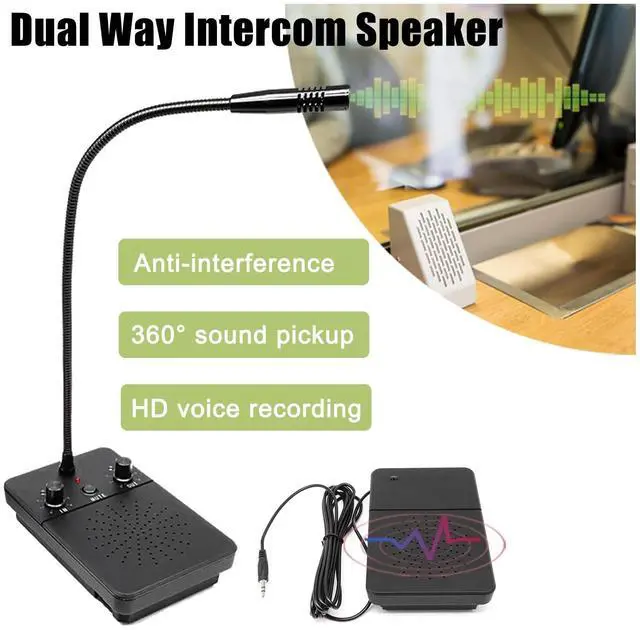 Window Intercom System Features: 1. Hands-free two-way talkback with full automaticity. 2. Microcomputer controlled circuit with squelch function, can effectively solve echo and squeal problems. 3. This window intercom built-in high power speakers provide powerful and loud sound, voice is lifelike and clear. 4. Easy installation, the master station is installed in the working place and the sub station out of the working room, only one wire is needed to connect them. 5.360 pointing sound pickup design, effectively recording sound.