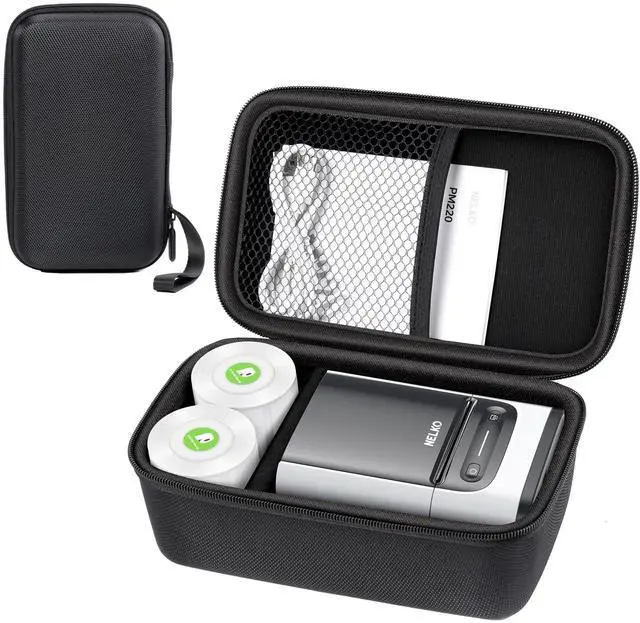 External dimension: 7.67 x 4.72 x 3.34 inch (L x W x H). NELKO label maker case is ideal for PM220 label maker. It comes with a detachable hand strap, making it convenient to carry the label maker handheld anywhere. Label maker organizer case with mesh pocket, large enough for label maker, for PM220 label maker tape x2, cable and other accessories ^^ Full Protection- NELKO label maker case made of hard EVA material and smear proof PU leather, semi-water resistant, drop-resistant and easy to clear. Soft velvet interior lining prevents the PM220 label maker machine with tape or other label makers from being scratched. Double layer protection can protect your Bluetooth label manufacturer from dust, dirt, impact, accidental drops, and scratches ^^ Simple and Practical Design- The practical inner mesh pocket and divider in the Nelko PM220 Bluetooth label maker case can hold USB cables, user manual, and other accessories. The independent dividing strip inside the Bluetooth label printer box is separate for label maker tape, making it easy to adjust and manage the label maker and printer labels ^^ Widely Compatible- Hard travel case compatible with NELKO PM220 label machine and Bluetooth label machine of the same appearance on the market.