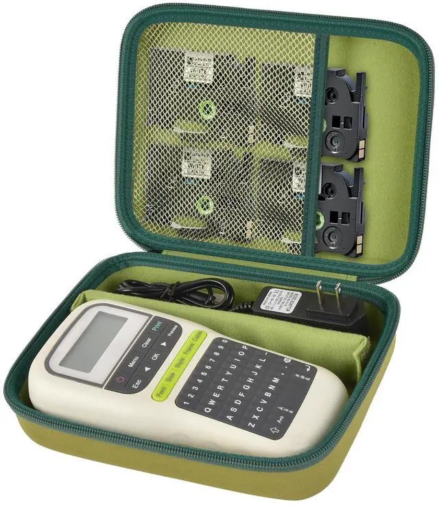 Splash-proof Drop-proof Hard Shell Label Maker Orgainzer : Holder bag for brother p-touch 110 label maker features a rigid outer case; label printer storage resists water, dust, scratches, drops, and impacts, passes 1.2 m drop test without damage, safeguard the machine during daily commutes and long-distance shipping