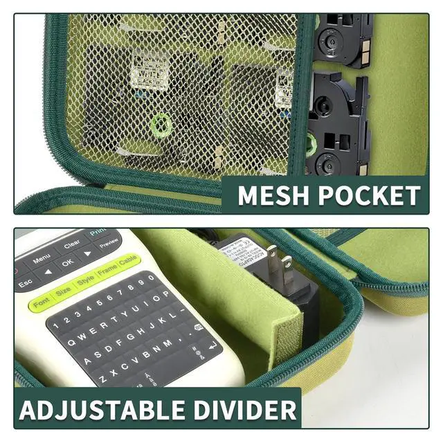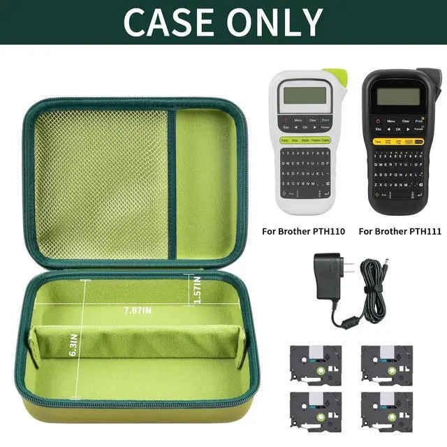 Large-capacity Storage Bag for Brother P-touch Label Maker : Label printer case holds for Brother label maker,tape rolls , charger and charging cable at once, keep desk and travel tidy. Label maker machine box external size: 9.06.53 inches(Bag only, excluding device and accessories)