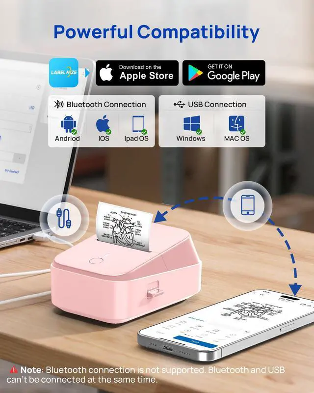 Easy to Use- PM260 Bluetooth Label Maker machine with tape supports iOS & Android and PC. For iOS & Android mobile phone, please download the "Labelnize" APP to Print via Bluetooth. For PC, you need to download the driver and APP for PM260 label printer, please visit " labelnize. com" to obtain the PM260 computer driver and APP.