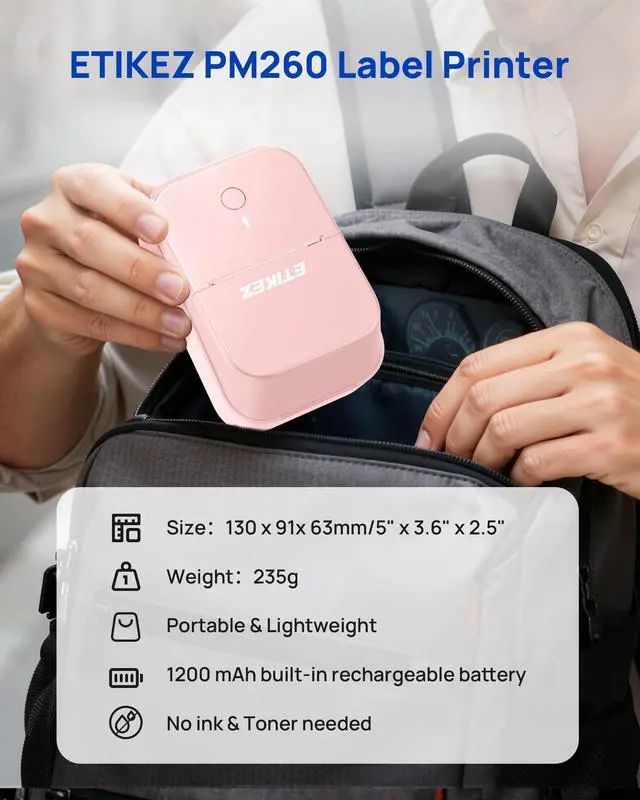 Inkless Label Maker: No Ink, No Mess! Print Smart, Save More! The Thermal Printing Technology of PM260 Label Maker just need to load and print! Smart Built-in rechargeable battery with auto-shutoff after 15 minutes of inactivity saves energy. Perfect for precision tasks like marking medicine bottles, organizing wires, tracking expiration dates, or highlighting important reminders with crisp clarity ^^
