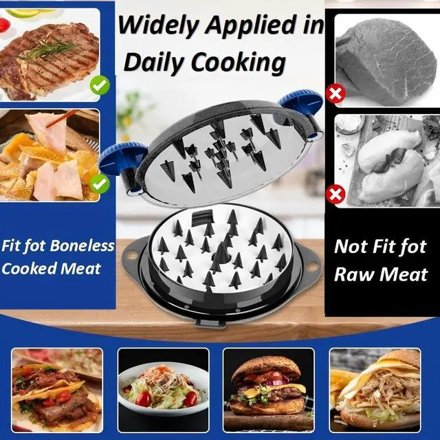 • Razor-Sharp Stainless Steel Spikes: This chicken shredder tool features stainless steel spikes that effortlessly tear through cooked chicken, pork, or beef 2x faster than those made with flimsy plastic shredders. Perfect for shredded chicken salads, tacos,BBQ pulled pork, prepping pet foodor meal prep rust-resistant and built to last