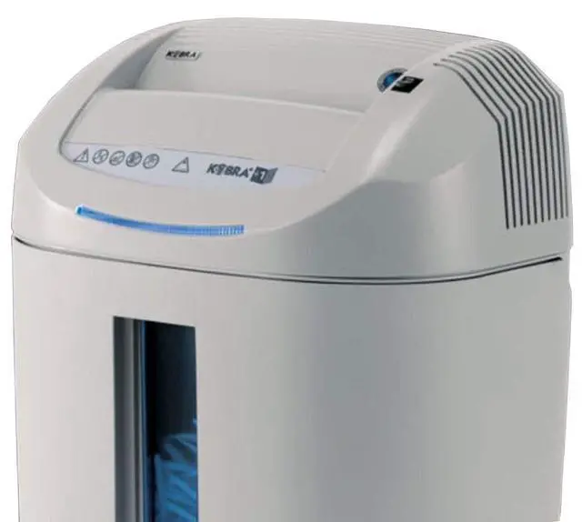 KOBRA +1 CC4 Professional Office Cross Cut Shredder, Shreds up to 14 sheets of paper at a time and credit cards, Carbon hardened cutting knives unaffected by staples and clipsCross-cut shredder. A shredding capacity of up to 14 sheets at a time and credit cards makes it convenient and easy to operate. Equipped with the ENERGY SMART system with efficient optically illuminated indicator for power saving stand-by mode and environmental protection. Motor is featuring 24 hour continuous duty operations without overheatings or duty cycles. Equipped with a removable waste bin for easy emptying with a front transparent window indicating the level of the shredded paper; does not require plastic bags.