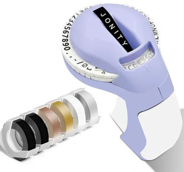 Embossed Label Maker: A retro-style label maker and ergonomic 3D embosser, this compact embossed label maker comes with dedicated adhesive tape and requires no batteries or ink.