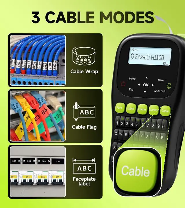 Versatile Labeling: The EazeID H1100 cable label maker offers 21 fonts, 100+ frames, and over 800+ symbols, 22 language, along with an easy-view graphical display for precise preview before printing. This versatility makes it suitable for a wide range of applications, from home improvement to office management. Specialized symbols and frames enhance the visual appeal and functionality of your labels ^^