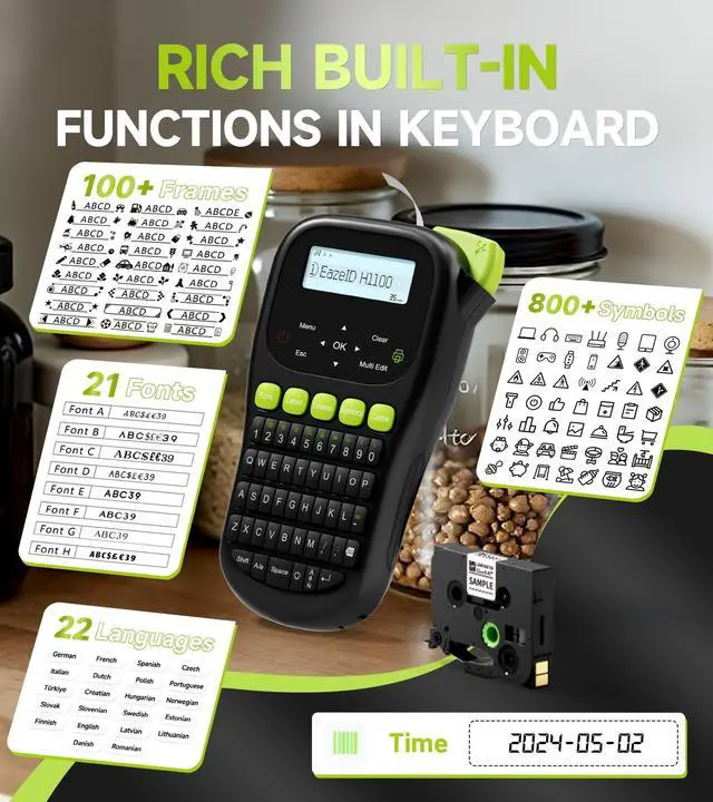 Intuitive Typing: The EazeID H1100 label maker comes with a QWERTY-style keyboard, making it easy to type text for any organizational task. The familiar layout reduces learning curves and enhances productivity ^^ Built-in Memory for