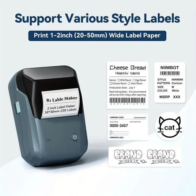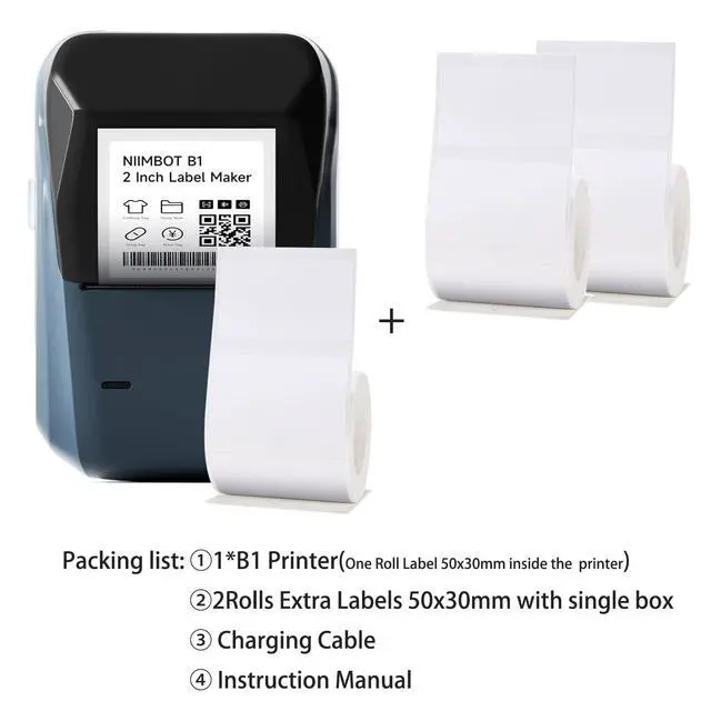 B1 Label Maker with 3Rolls White Label Tape 50x30mm (2 x 1.18 inch )