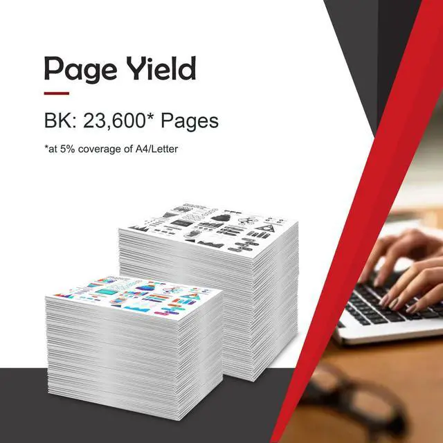 ^^ High Yield: Estimated lifetime print yield of 23, 600 pages per black and 16, 500 pages per color cartridge.