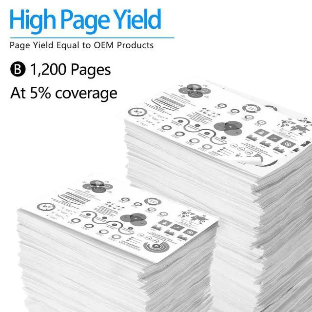Page Yield: 1, 200 pages per based on 5% coverage of Letter size Paper. Actual toner yield varies with usage, graphics printed and environmental conditions.