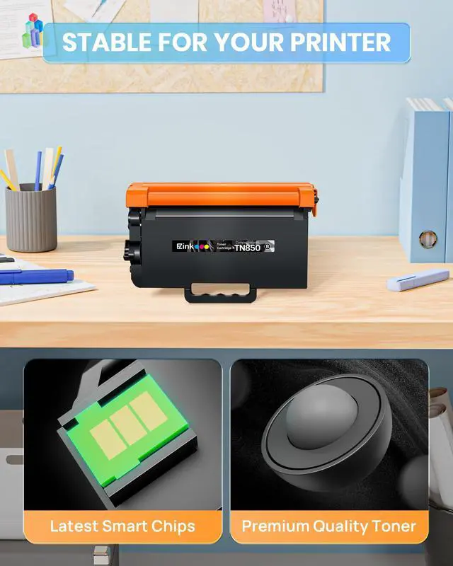 Printer Compatibility: TN-850 TN-820 toner compatible with Brother HL-L5000D DCP-L5500DN DCP-L5600DN DCP-L5650DN HL-L5100DN HL-L5200DW HL-L5200DWT HL-L6200DW HL-L6200DWT HL-L6250DW HL-L6300DW HL-L6400DW HL-L6400DWT MFC-L6750DW MFC-L6900DW MFC-L5700DW MFC-L5850DW MFC-L5800DW MFC-L5900DW MFC-L6700DW MFC-L6800DW Laser Printer ^^ E-Z Ink TN850 high yield toner cartridges are equipped with the latest upgraded chip, perfectly compatible with your printer, and advanced production technology and strict quality inspection processes to provide you with clear text printing results.