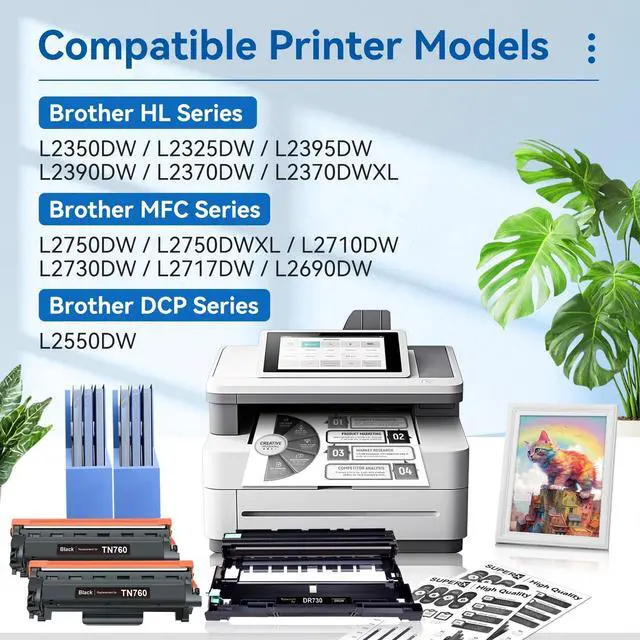 Printer Compatible for use with: TN760 DR730 compatible toner cartridge replacement for Brother HL-L2350DW HL-L2325DW HL-L2395DW HL-L2390DW HL-L2370DW HL-L2370DWXL MFC-L2750DW MFC-L2750DWXL MFC-L2710DW MFC-L2730DW MFC-L2717DW MFC-L2690DW DCP-L2550DW Laser Printer ^^