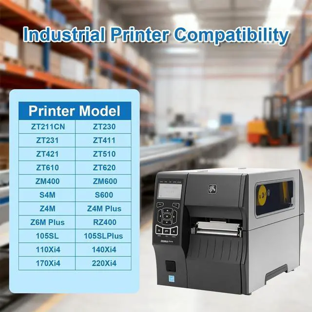 [Typical Applications in Label Printing] Perfect for shipping addresses, warehouse shelf tags, inventory management, product identification, garment labels, manufacturing parts identification, and medical/ pharmaceutical labels ^^ [Optimized for Paper Labels] Designed for optimal performance on coated, glossy, semi-gloss, and matte paper labels. The formulation provides reliable adhesion to resist smudging during normal handling on these materials ^^ [Universal Printer Compatibility] This 102mm x 450m ( 4.02" x 1476') ribbon with 1" core ensures wide compatibility with industrial printers including Zebra, TSC, Honeywell, Intermec, Printronix, GoDex, Citizen, Sato, and Datamax ^^ [Clear & Reliable Print Quality] Achieves high first-time scan rates with sharp, high-density prints and offers improved durability over standard wax, keeping labels legible in demanding workflows ^^ [Protects Your Printer] Features an anti-static back coating that helps minimize carbon dust to help protect the printhead from abrasion.