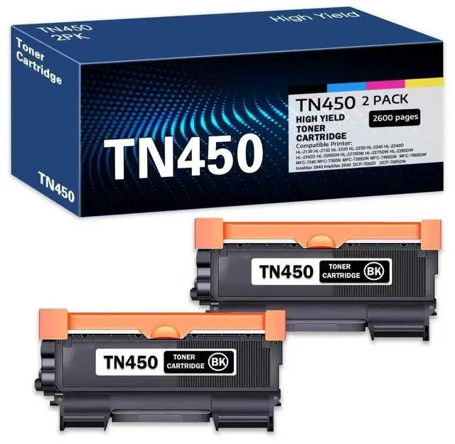 High Page Yield: Up to 2, 600 pages per TN-450 Black Toner (at 5% coverage, Letter/A4) ^^