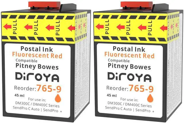 High Yield & Vivid Color: This DIROYA 765-9 ink cartridge is designed for high volume mailing, containing 45ml of fluorescent red ink that yields crisp, clear imprints on your mail.