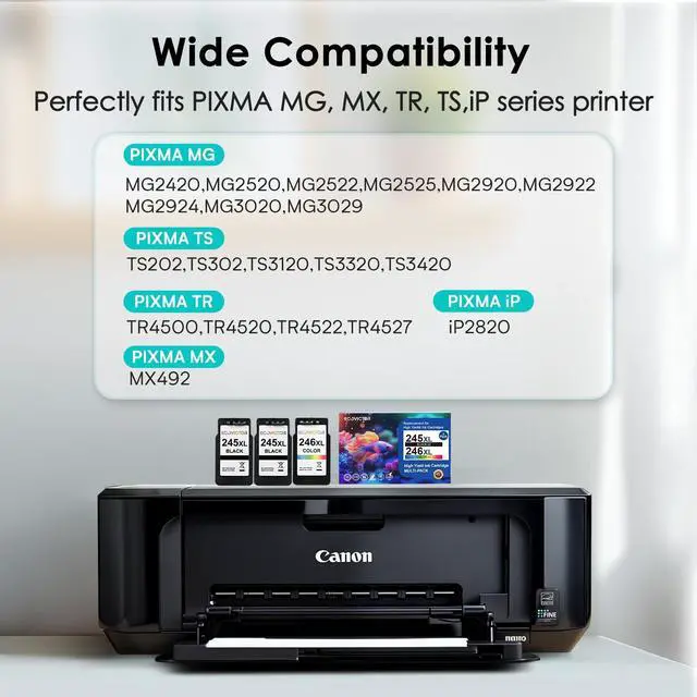 ^^ Package Contents: 2 PG-245 XL black ink cartridge and 1 CL-246XL color ink cartridge replacement for 245xl and 246xl ink cartridge canon (this is not an OEM product). For canon ink 245 and 246 have undergone strict inspections to ensure that each ink for cannon ink 245 246 is compatible with your printer perfectly and prints well. This is the perfect holiday or birthday gift for home, office and back-to-school students.