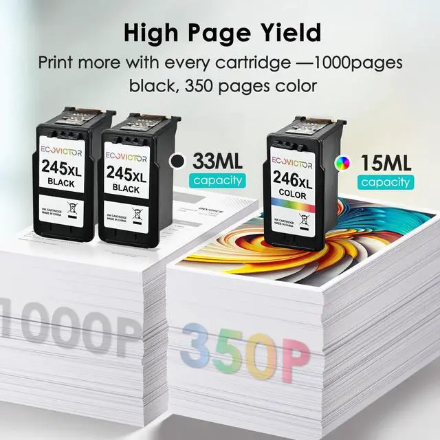 Upgraded Chips: EcoVictor For canon printer ink 245 and 246 combo pack is equipped with the latest smart chips to ensure compatibility and allow you to monitor and track ink levels. ^^ For Canon 245XL 246XL Combo
