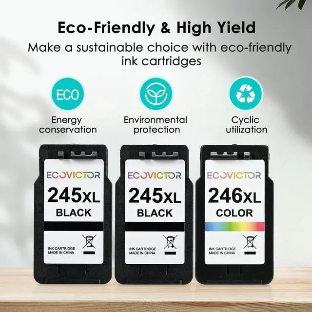 ^^ Eco-Friendly Printing Excellence: EcoVictor 245 xl 246 xl ink cartridges for canon printers are made from eco-friendly materials and the latest technology to deliver greater efficiency, higher printing precision, and reliable accuracy. Meeting FSC standards, these for canon mg2522 ink cartridges support sustainability. The ink for canon pg-245xl black ink cartridge prints sharp, clear black text for your documents, and the ink for canon 246xl color ink cartridge produces vibrant, natural color photos.