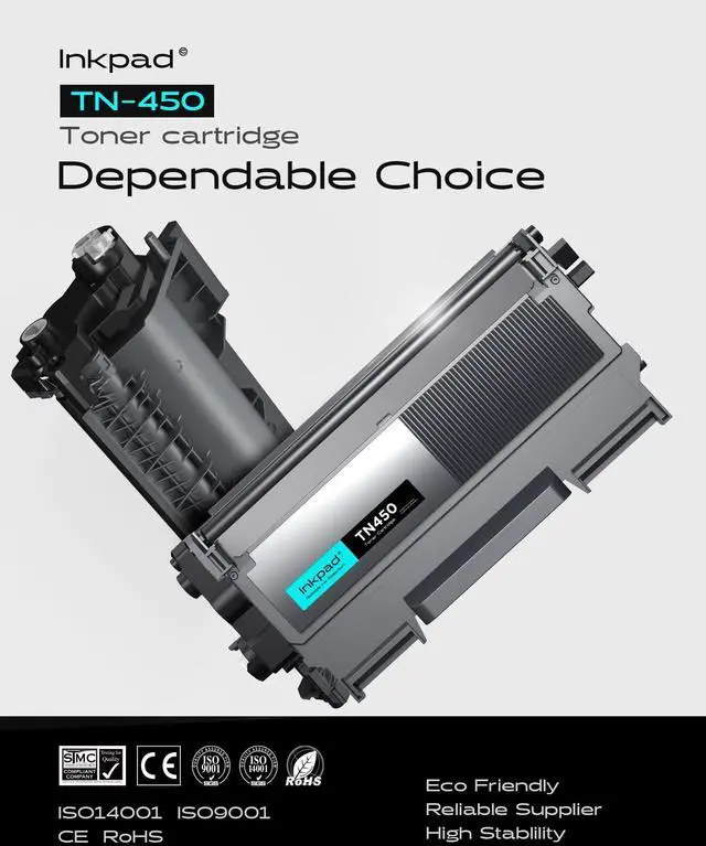 Quick Recognition: iNKPAD toner cartridges undergoes strict quality control to ensure that every compatible TN450 TN420 toner can be quickly recognized by your printer and work perfectly. Timink compatible toner cartridges also come with an accurate ink level display so you can keep track of it. ^^ Our TN450 toner replacement cartridges have been certified by ISO-14001/ISO-9001 and MSDS. Strictly inspected before shipment to ensure stability and durability. ^^ Count on high-quality, reliable printing and save time by avoiding common printing problems. iNKPAD compatible TN-450 toner cartridge delivers a printing experience that's essential for office productivity.