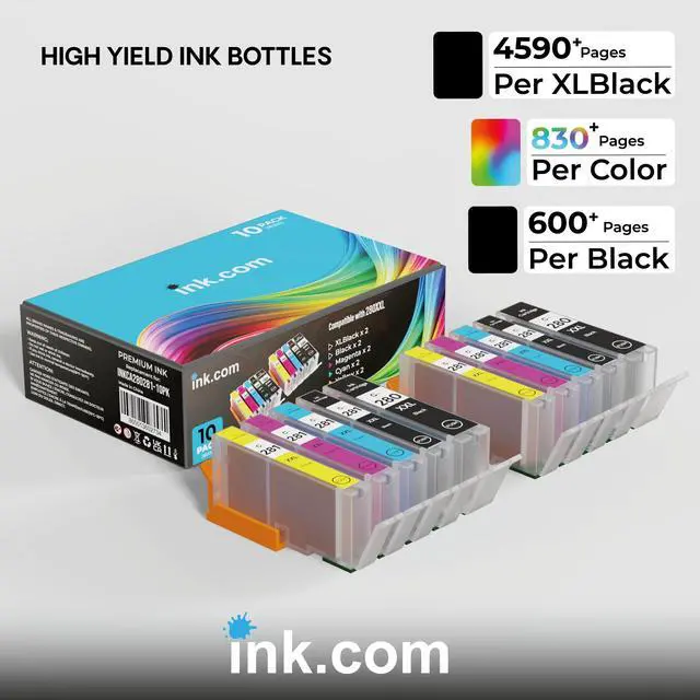 Compatible Replacement for Canon 280XXL and 281XXL Ink Cartridges This Ink. com ink cartridge set is designed as a compatible replacement for Canon PGI-280XXL and CLI-281XXL ink cartridges, delivering consistent performance and reliable printing. Engineered to work smoothly with select Canon PIXMA printers, it provides dependable results for everyday home, school, and office printing needs without compromising print clarity. ^^ High Yield XXL Cartridges for Extended Printing Featuring high-capacity XXL cartridges, this 10-pack is ideal for users who print frequently and want fewer replacements. The XL Black and XXL color cartridges help reduce cost per page while producing sharp black text and vibrant colors.