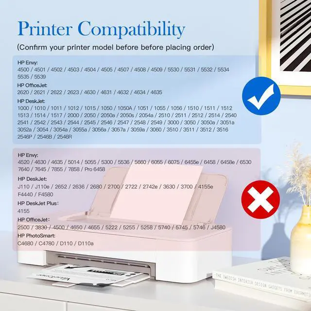 Compatible Printers: Printer for HP Envy 4500 4501 4502 4503 4504 4505 Series, Envy 5530 5531 5532 5534 5535 5539 Series, OfficeJet 2620 2621 4630 4632 4634 4635 Series, DeskJet 1000 1010 1012 1050 1051 1055 Series, DeskJet 1056 1510 1512 2000 2050 2510 Series, DeskJet 2512 2514 2540 2541 2542 2543 Series, DeskJet 2544 2646 2547 2548 2549 3000 Series, DeskJet 3050 3054 3510 3511 3512 Series, DeskJet 3050a 3051a 3054a 3052a 3056a, DeskJet 2546P 2546B 2546R Series ^^