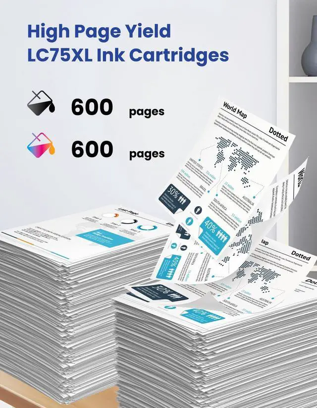 Use: Our LC75 XL LC75XL ink cartridges are designed for easy installation and use, so you can spend less time troubleshooting and more time printing. Simply pop them in, and you're ready to go ^^ Reliable