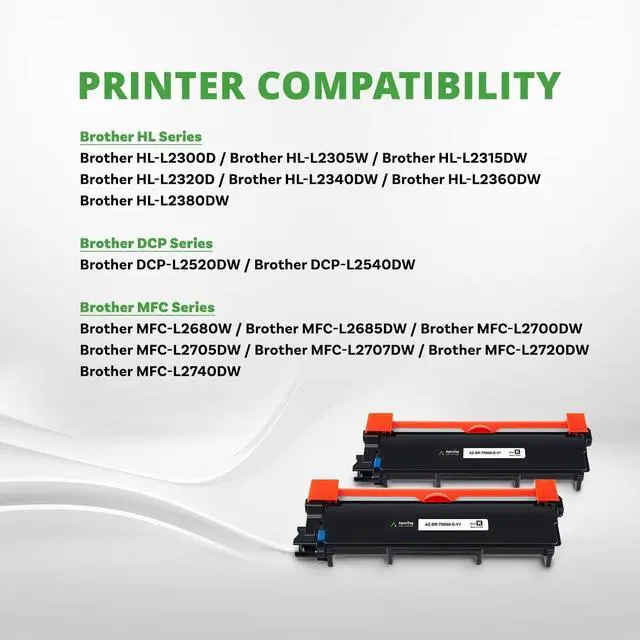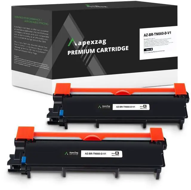 Consistent Print Quality our brother tn660 toner cartridge delivers sharp, crisp, and bold black text, ensuring professional-looking documents with every print ^^ High-Yield Capacity apexzag tn630 toner for brother printer prints up to 2, 600 pages per cartridge, making it an ideal choice for high-volume printing in offices, businesses, or home use ^^ Cost-Effective Solution offers the same quality as OEM toner cartridges at a fraction of the cost, our brother tn630 toner cartridge black helps you save money without compromising print performance ^^ Compatibility apexzag brother toner tn660 seamlessly works with Brother HL-L2340DW, MFC-L2700DW, DCP-L2540DW, and more, ensuring reliable compatibility (see compatible devices) ^^ Smooth Installation our tn-660 brother toner cartridge is easy to install with no technical expertise required, so you can replace your toner quickly and efficiently, reducing printer downtime ^^ Perfect for Home and Office Use whether you're printing reports, invoices, or study materials, apexzag brother tn-660 toner cartridge black high yield is designed to handle a variety of printing needs with consistent results ^^ Fade-Resistant Prints ensures your printed documents retain their crispness and clarity over time with our tn-630 brother toner cartridge, making it suitable for long-term archiving ^^ Sustainable Design our brother tn-630 black toner cartridge is built with materials to reduce waste and support sustainable printing without compromising on quality or reliability ^^ Reliable and Durable Performance apexzag tn660 toner for brother printer is designed for smooth and uninterrupted printing, reducing the risk of paper jams and printer errors, keeping your workflow efficient ^^