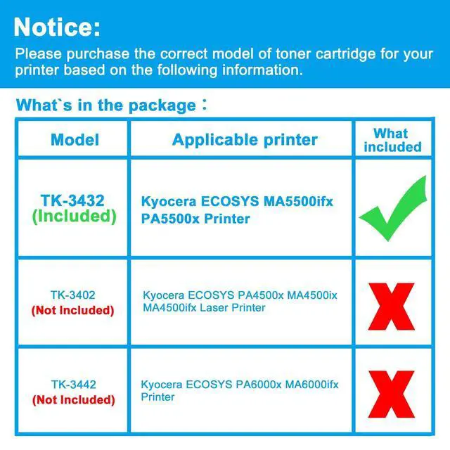 ^^ Compatible Printers: Replacement for Kyocera ECOSYS MA5500ifx PA5500x Printer ^^