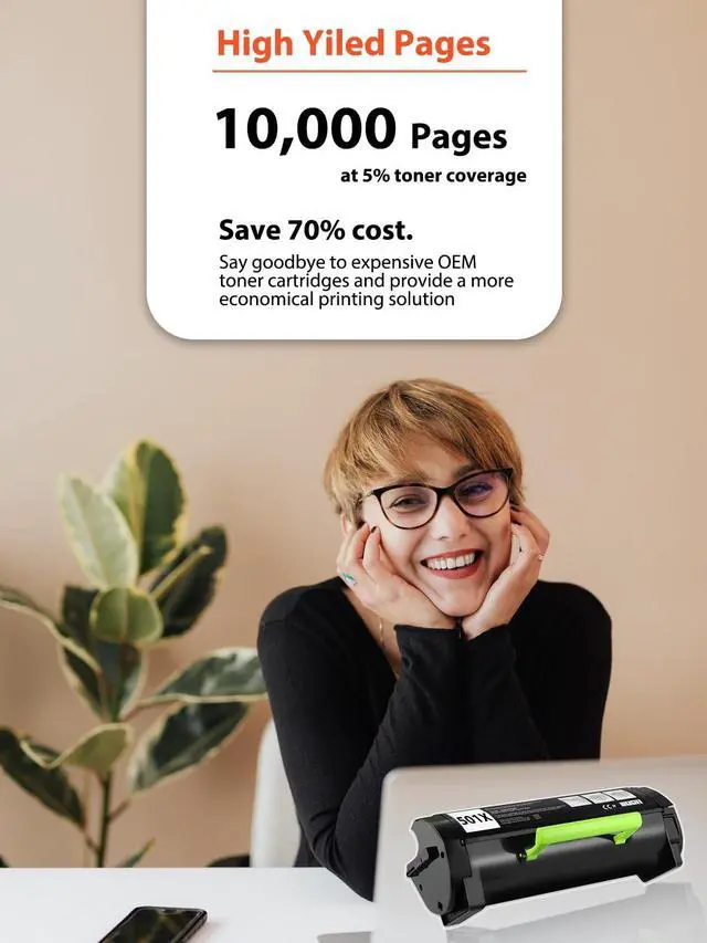 High Page Yiled: Up to 10, 000 pages per compatible 501X toner cartridge at 5% coverage black on Letter/A4 ^^