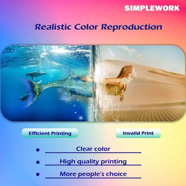 • Premium inkSIMPLEWORK is individually packaged and equipped with the latest IC chip, which can accurately detect the remaining amount of ink. After our strict production stage and comprehensive testing, the printing is clear, the color is restored to vividness, and the quality and price are guaranteed to meet all your needs.