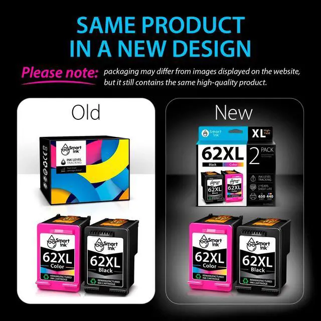 Excellent Print Quality: Smart Ink 62XL ink cartridges are remanufactured from OEM products, professionally cleaned, refilled, and tested to provide you with the same print quality as the original ink cartridges ^^
