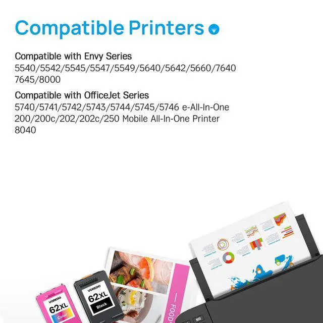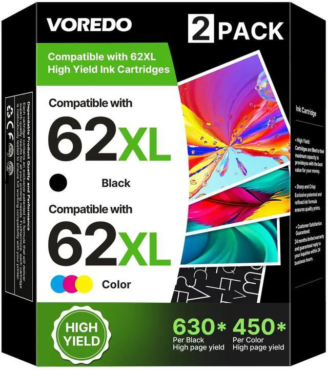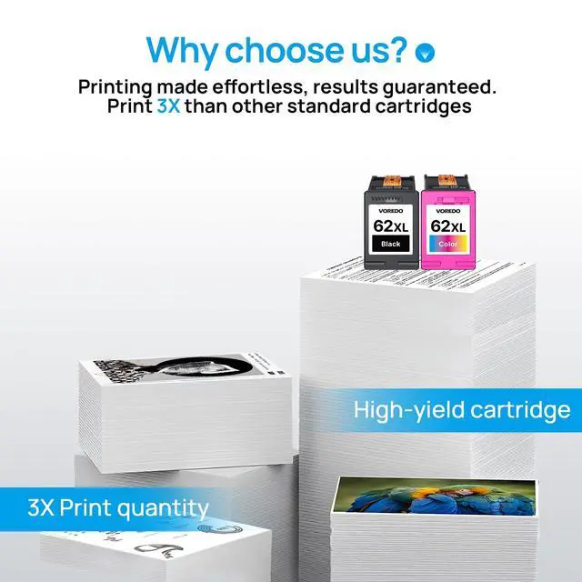 Reliable & High Quality: VOREDO for hp 62xl ink cartridge combo pack ensures consistent results. Precision printheads prevent clogging/waste for smooth, smudge-free printing. Advanced ink delivers sharp text and vivid colors with natural, detailed prints ideal for all documents.