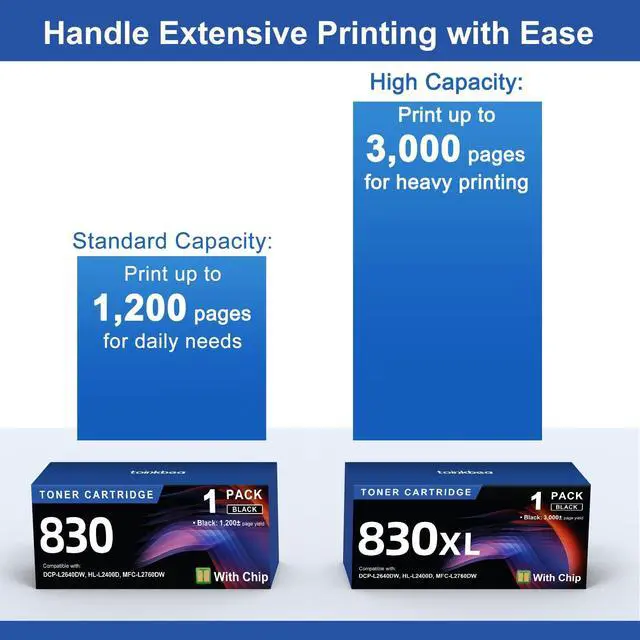 TN830XL Black Toner Cartridge Ink for HL-L2460DW Printer Replacement for Brother TN830 XL TN830 TN-830 Toner Set for HL-L2460DWXL DCP-L2640DW HL-L2405W MFC-L2820DW MFC-L2820DWXL, 1PK (with Chip)