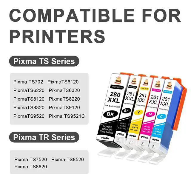 High-Capacity Output: PGI-280XL Black delivers up to 600 pages, CLI-281XL Black lasts for 6,360 pages, and CLI-281XL Cyan/Magenta/Yellow each yield 850 pages (tested at 5% coverage on A4/Letter).