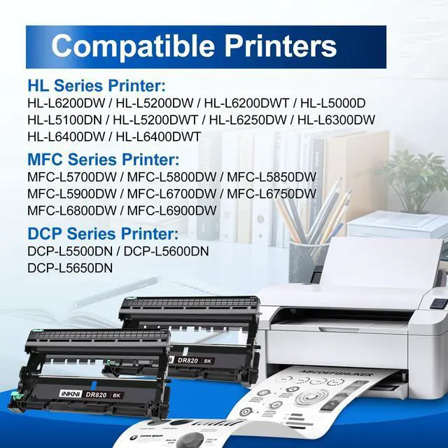 Pack Drum Unit Pakege: each DR820 drum unit can print up to 30, 000 pages when used with a compatible toner cartridge. Total print 60, 000 pages. ^^ INKNI offers a more cost-effective DR820 drum unit. DR-820 black laser drum unit that can professional laser print quality. Provides clear and sharp printing results, consistent quality, and reliability. ^^ INKNI ServiceINKNI provides a professional DR820 drum unit compatible for Brother printers. DR-820 drum comes with a 2-year INKNI manufacturer warranty and 24/7 customer support via Messaging. ^^ INKNI DR820 Drum unit compatible for Brother DCP L5500DN L5600DN L5650DN, HL L5000D L5100DN L5200DW L5200DWT L6200DW, L6200DWT L6250DW L6300DW L6400DW L6400DWT, MFC L5700DW L5800DW L5850DW L5900DW L6700DW L6750DW L6800DW L6900DW Printer.