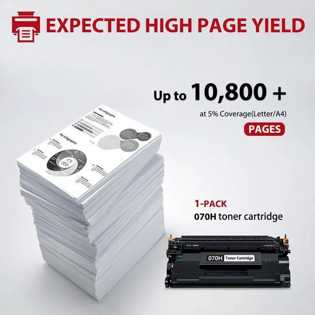 High Page Yield: Up to 10, 800 pages per 070H Black toner cartridge (5% coverage of A4 paper) ^^
