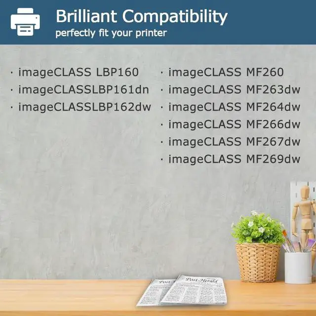 Saving More - Package Contents 2 x CRG-051H Black Toner Cartridges, every Cartridge Page Yield 4, 100 Pages at 5% coverage ISO/IEC 19752 (letter/A4). Save 70% compared to that of original toner cartridges. No need to pay more for the pricey stuff. ^^ Compatible Printer - 100% Compatible with Canon imageCLASS LBP160 LBP161dn LBP162dw MF260 MF262dw MF263dn MF264dw MF266dw MF267dw MF269dw. ^^ Lifetime Service - Meticulous care is offered for any problems regarding your order, even if refund window is close. Always stand by for your needs. ^^ Easily Install - Just remove the protective cover and the seal tape, then insert the cartridge into the printer slot.