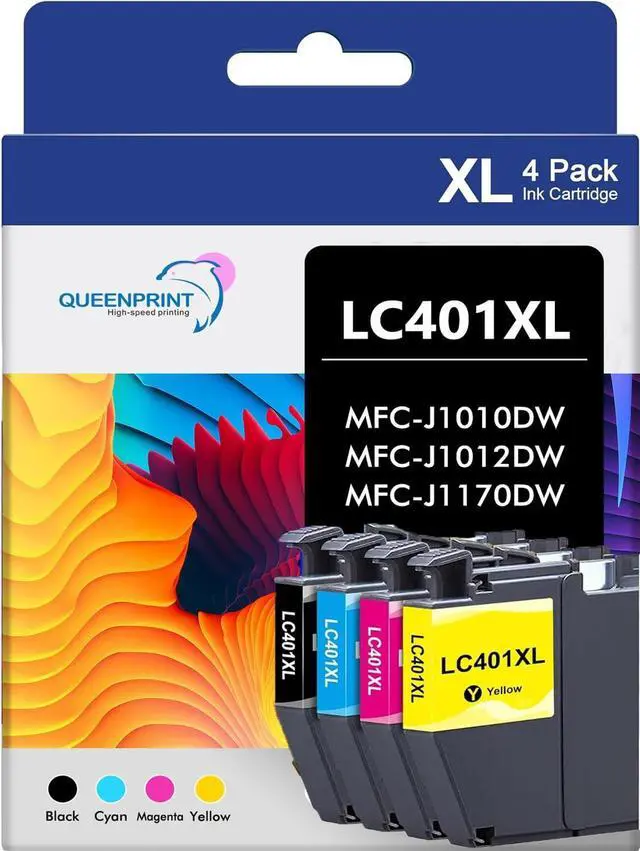LC401Compatible for LC401xl ink cartridges for brother printer are compatible with Brother MFC-J1010DW MFC-J1012DW MFC-J1170DW printer ^^ LC401XLProduct comes in 4 packs of high yield for lc401xl ink cartridges, including 1 x LC401XL BK, 1 x LC401XL C, 1 x LC401XL M, 1 x LC401XL Y ^^ HIGH PAGE YIELD600 pages per for brother lc401xl black ink cartridge, 600 pages per LC401 XL C/M/Y ink cartridges (based on 5% coverage) ^^ HIGH QUALITYCompatible ink cartridges replacement for Brother LC401 undergo professional manufacturing technology and strict testing to provide you with the same printing quality as the original ink cartridges ^^ PREMIUM PERFORMANCEOur ink cartridges for brother lc401 ink cartridges deliver excellent printing quality and vivid colors, which will refresh your impression