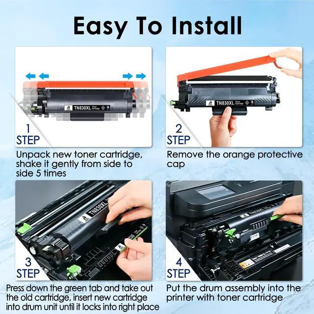 Compatible Printers Compatible With Brother HL-L2405W, HL-L2420DW, HL-L2460DW, HL-L2460DWXL, HL-L2465DW, HL-L2467DW, HL-L2480DW, HL-L2865DW, MFC-L2760DW, MFC-L2807DW, MFC-L2820DW, MFC-L2820DWXL, MFC-L2900DW, MFC-L2900DWXL, MFC-L2980DW, DCP-L2640DW, DCP-L2647DW, HL-L2400D Printer ^^ Packag Contents 2 x TN830XL toner cartridges, 1 x User Guide. ^^ Advantages Multiple Certifications, Premium Print Quality, Cost Effective, Newest Chip, Secure Packed. ^^ High Page Yield3000 pages per TN920XL toner cartridge at 5% coverage. ^^ Product Quality Control Certified by ISO9001and MSDS. Strictly tested with industry quality control processes for compatibility, performance, print quality and page yield.