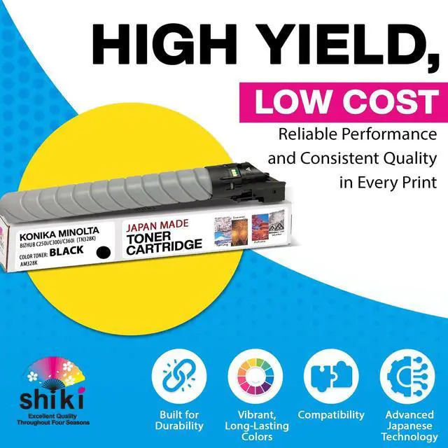 Color: Black / Compatible Toner Cartridge Replacement for Konica Minolta bizhub C250i C300i C360i TN328K AAV8130 (Black, 28000 Pages) ^^ Developed using Japanese technologies, shiki yields outstanding printing quality that can vividly express the various scenes of shiki, or four seasons in Japanese. ^^ Having passed all of our tests, shiki has the quality that is equally high as OEM products in page yield and other quality indexes. ^^ To enjoy the highest printing quality, we recommend using the shiki brand for all four colors. ^^ Excellent Quality Throughout Four Seasons ^^ SHIKI contains high-grade toner that has passed the most rigorous environmental testing and maintains a stable and excellent quality throughout four seasons. *shiki () in Japanese means four seasons.