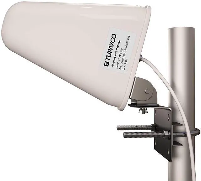 WiFi antenna DB541 V-POL TY-2458-9-9 The dual Band design of this antenna eliminates the need to purchase different antennas for each frequency The main benefit of this antenna is that it is outdoor antenna which works on 2 4GHz and 5GHz range and it's compatible with newer dual Band routers electrical data gain 9 dBi vswr 20 dB max input Power 100 W mechanical data mast size 40-50mm rated wind Velocity 210km/H