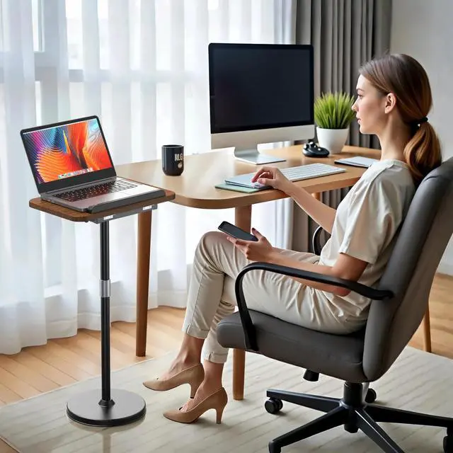 Dual Use Laptop Stand: Functions as both a desktop stand and a floor stand. Anti-slip pads on the tray and base ensure stability on all surfaces. Ideal for office, study, or entertainment, providing a stable and comfortable experience ^^