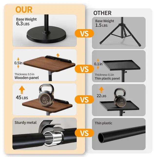 Durable & Stable Design: Featuring a sturdy support pole, a 6.3 lbs metal base, and full-coverage anti-slip pads on the bottom, this small laptop table holds up to 45 lbs. Provides stability on all surfaces and is easy to assemble in under 5 minutes for added convenience ^^ Wooden Panel & Book