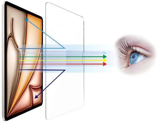 Full Coverage Tempered Glass Screen Protector only fits iPad Pro M4 (2024 Release) and iPad Air 13-inch M2 (2024 Release) and iPad Air 13-inch M3 (2025 Release). McgojoHi Eye care tempered glass guard screen protector make it possible to enjoy playing with electronic devices and healthy life. What is Blue Light? Research shows that blue light mostly exists in the rays of light emitted from electronic device displays, such as mobile phones, computers, vidio games and so on. It is emitted from LED screens from devices such as mobile phones, It contains a high-energy blue light of 450-470nm, which can go straight to the yellow spot at the base of the retina, causing serious damage to the eyes.