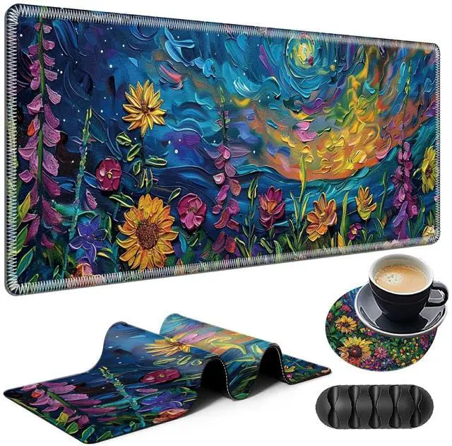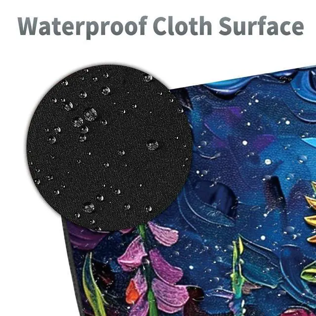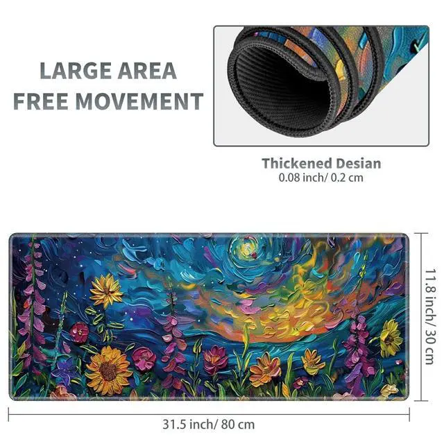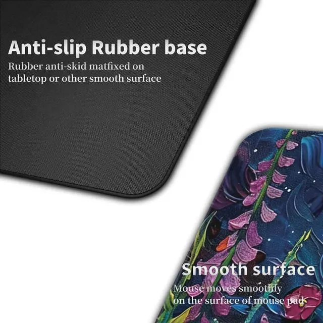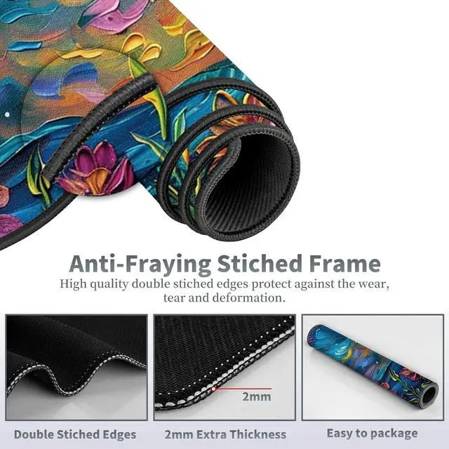 ^^ Natural Rubber Base The soft and dense non-skid nature rubber base keeps this oversize desk pad firmly in place. This long mouse mat remains uniformly flat even over imperfect surfaces. Just immerse your work or games without worrying about the annoying mouse pad movement. ^^ Edge Banding Desgin The full desk mouse pad Sewing frame ensures no friction or sagging. The edge trim design prolongs the service life and prevents the narrow top strip from leaving the base. Reinforced edges prevent deformation or damag ^^ Washable Design Desk Pad A spill-proof coating makes liquids slide right off the surface.
